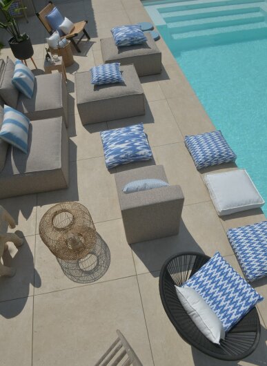 Inspiriert von den typischen mallorquinischen Stoffen, bringt man ein Stück der Insel in sein Zuhause! Kissen aus der Serie Amarador bringen das unverwechselbare Sommerfeeling in unseren Outdoorbereich.