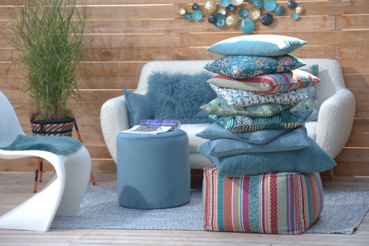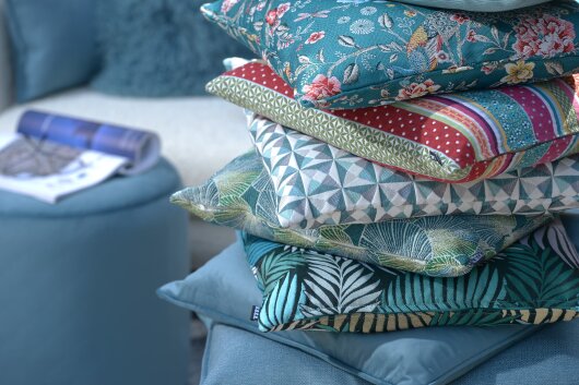 Die Kissen lassen sich wunderbar mit vielen Unis aber auch gemusterten Kissen kombinieren.