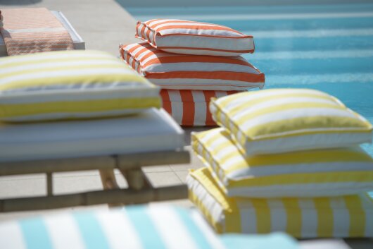 Unsere Outdoor Kissen sind nicht 100% wasserdicht, aber bei einem leichten Regenschauer sind sie wasserabweisend durch die DRALON Faser und den Teflon - Schutz!
