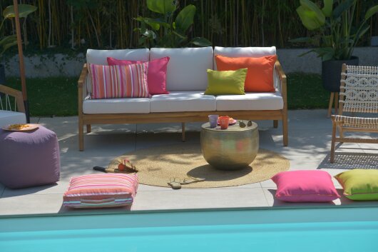 Die farbstarken Kissen mit abnehmbaren und waschbaren Bezügen kommen im Innen- oder Außenbereich perfekt zum Einsatz! Auf dem Gartenstuhl, der Liege, im Strandkorb oder einfach im Garten auf der grünen Wiese dürfen diese Farbtupfer einfach nicht fehlen!
