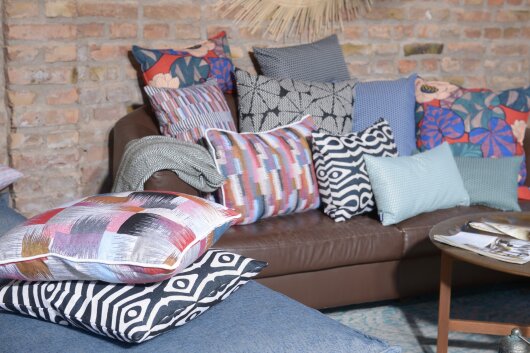 Das Kissen Henry ist mit schwarzen Details durchzogen und durch die Farben rot und royal-blau steht das Kissen für Selbstbewusstsein und einen modernen Look.