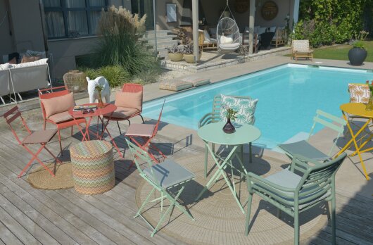 H.O.C.K. - AGORA Romy Outdoor Sitzkissen 45x45x6cm lindgrün sage mit Biese kleingemustert col. 20091