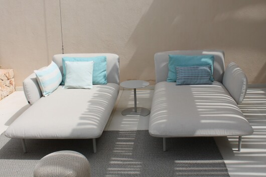H.O.C.K. Turo Outdoor + Indoor Sofakissen 45x45cm mit Biese col. 8 beige türkis Blockstreifen in&out