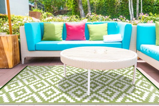Teppiche für Terrassen, Veranden oder Decks: Sie können diese verwenden, um den Außenbereich aufzulockern. Die Teppiche sind leicht und können z.B. im Kofferraum aufbewahrt und für den Camping- oder Strandausflug, für Ausflüge zum See oder für Ihr nächstes Grillpicknick verwendet werden.