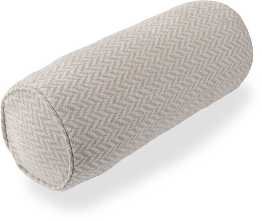 Die Nackenrolle hat eine angenehm weiche Oberfläche und eine leicht erhabene wollige Haptik.