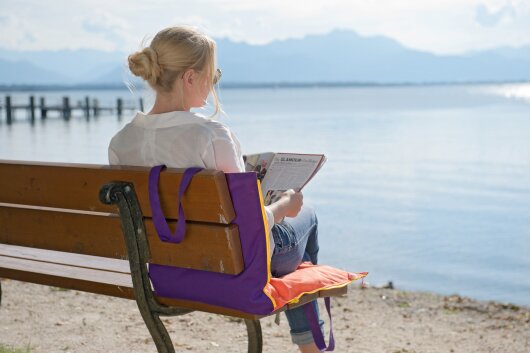 Die superleichte, sportlich-elegante Mehrzweck-Sitz- und Liegetasche für unterwegs. Zusammengefaltet ist Hhooboz eine coole Tragetasche mit viel Raum und auseinandergefaltet ein Sitzkissen, Rückenpolster, Strandmatte und vieles mehr. Hhooboz schützt vor Wärme, Kälte, Schmutz und Feuchtigkeit. Die hochwertige Vliesfüllung, bleibt formstabil und elastisch. Der sehr robuste Außen- und Innenbezug ist schmutz- und wasserabweisend. Hhooboz besitzt eine praktische Wende-Funktion durch aushängbare Reißverschlüsse. Der exklusive Schlüsselanhängerring hat eine unverwechselbare Hhooboz-Logogravur. Die integrierte kleine Innentasche ist sehr praktisch zum Aufbewahren von Handy, Schlüssel etc. und mit einem Reißverschluss sicher verschließbar. Die Größe S und M sind für unterwegs im Stadion, Tenniscourt oder Park perfekt geeignet. Größe L ist ideal am Strand, im Schwimmbad oder auf dem Rasen. Überall dort, wo langes Sitzen bequem sein darf! Auch als Yogamatte bestens geeignet!